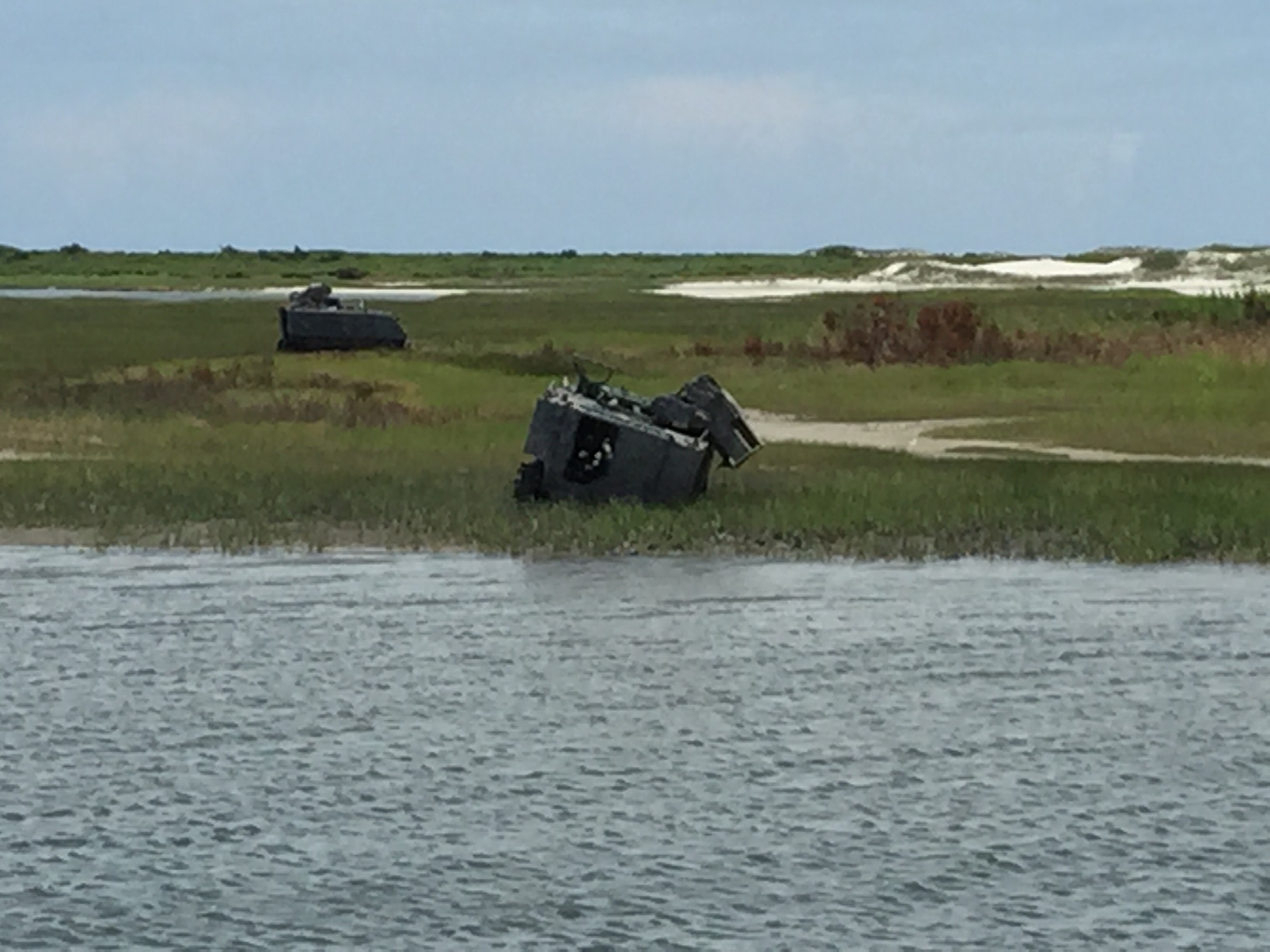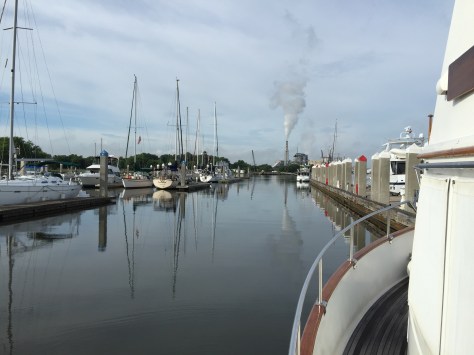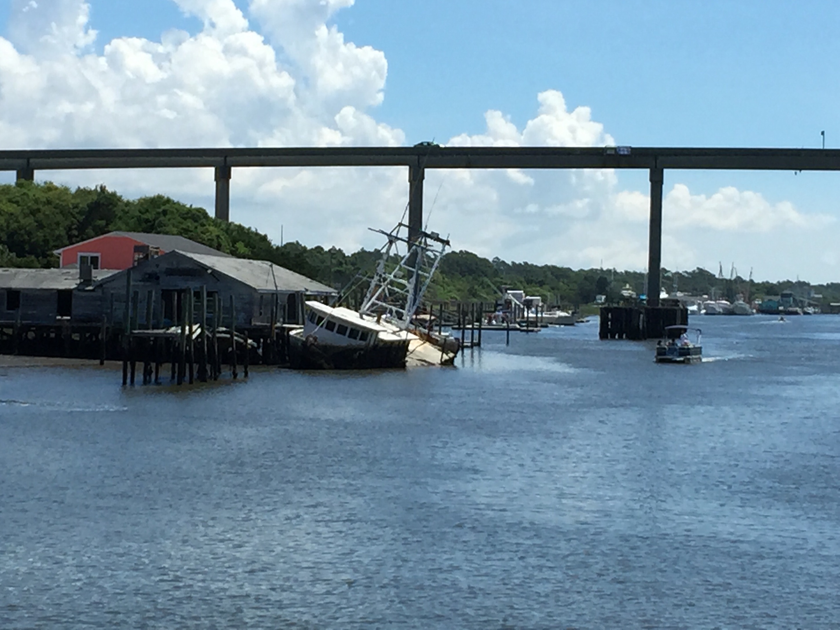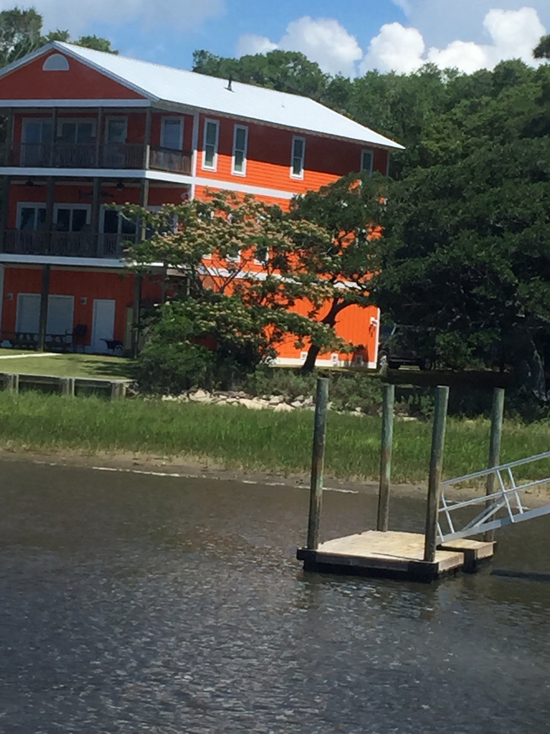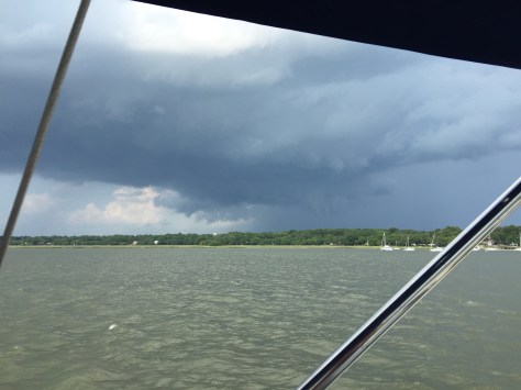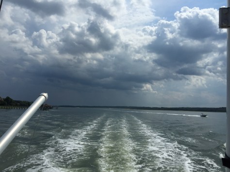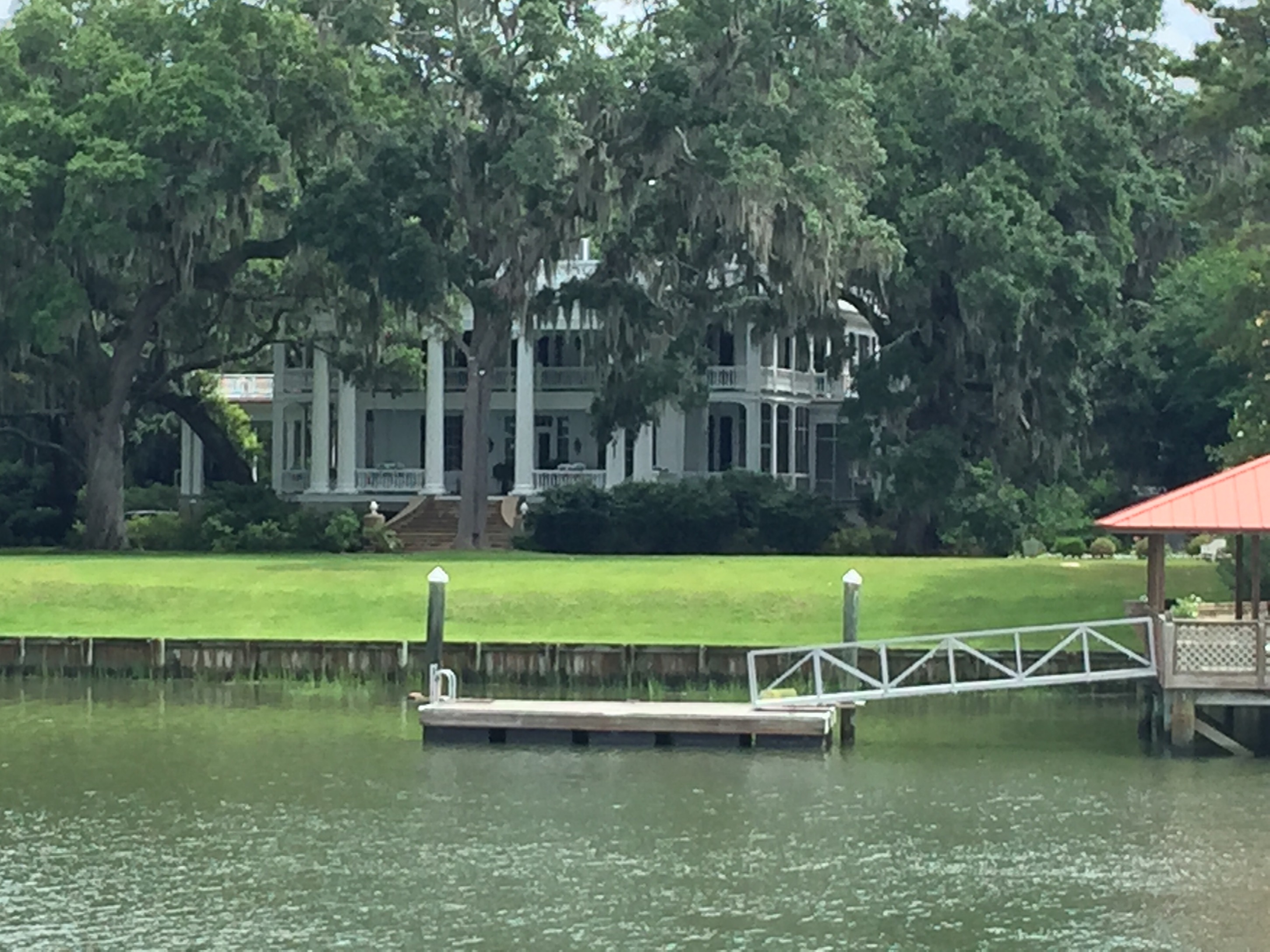 We passed byThe Marine basic training compound Parris Island. We commented on how hot it was and how hard it would be for basic training during today’s weather. We approached Beaufort sc with dark thunderstorms looming and again had to race to beat the storm.this time we were not totally lucky being able to tie up in dry weather. There was lightning thunder and the beginning of rain as we tied up and winds were strong however different people from adjoining boats raced  to help us tie up and we watch the rest of the storm safely from our cabin. After walking to town when the rains ceased we found a great restaurant called Q and enjoy a wonderful dinner of brisket barbecue and blackened shrimp. The southern green beans are to die for!