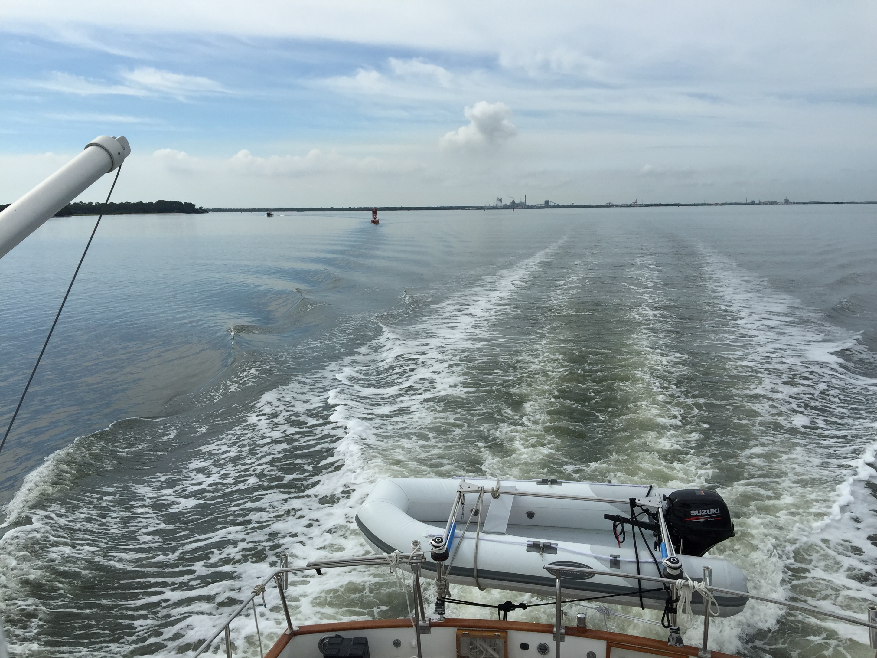 After a fight with the tide to leave Georgetown, we won! And wonderful dock mate from Holland came to help us. He had just sailed the Atlantic by sailboat with his wife and is headed to Boston. Very impressive!  We left Georgetown after being on the boat all day yesterday because of rain, lightning and thunder. There’s always a lot to do anyway on the boat!  I must admit I was disappointed because friends kept writing me about shops that were so cool there. Duncan was thrilled that I was on the boat helping him!