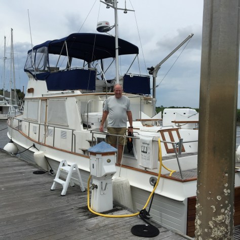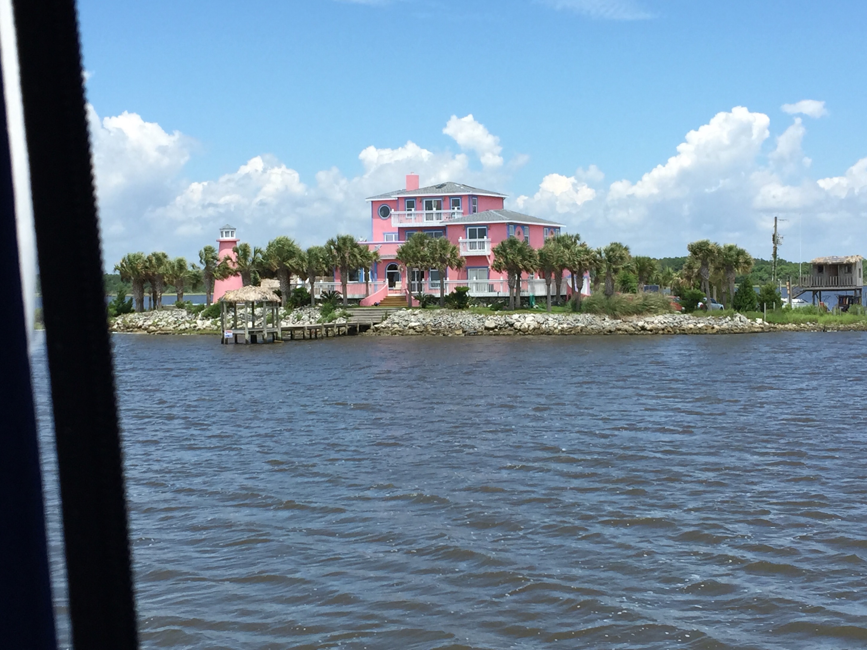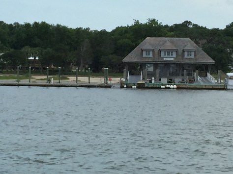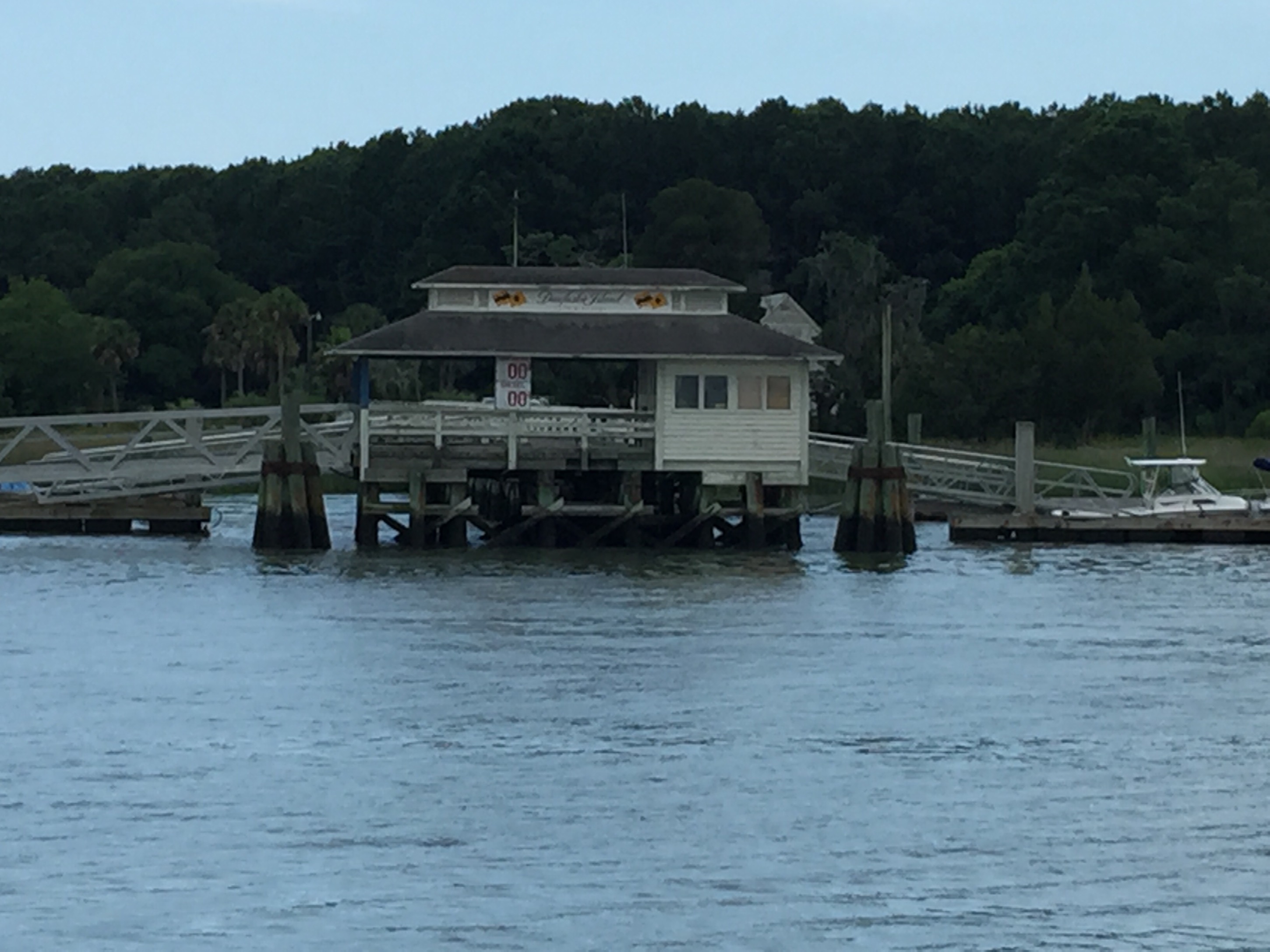 A wonderful town…pastel colored buildings with many different types of shopping and restaurants.  We only had time to experience the latter! We ate at a wonderful restaurant called Crab Trap in which we had a great fisherman’s platter with grilled local fish at wonderful deviled crab etc. We truly enjoyed it! We raced i port to beat a storm and we managed to tie up dry. However after dinner was a different story we had to race back to the boat in a huge downpour with lightning and thunder in the rest of the evening. In the morning we fueled up as it was a very easy location to do so and headed out by 930. We crossed into Georgia waters and have Glass like waters and a somewhat cloudy sky with predictions of possible late afternoon thunderstorms again. I will post some more pictures again of today and let you know where we stop tonight. It is fun not having a schedule we just know we have a goal!Edit Edit