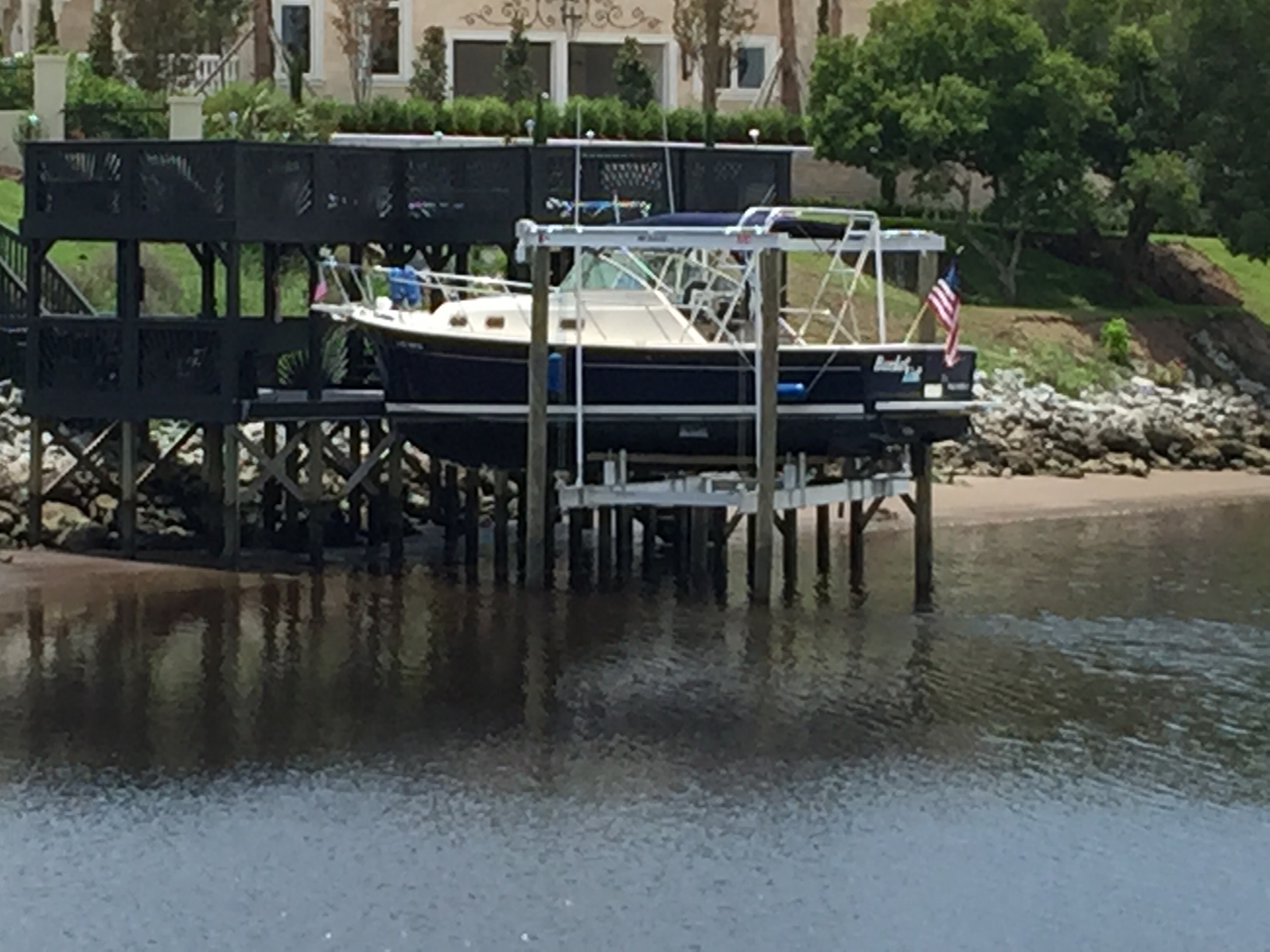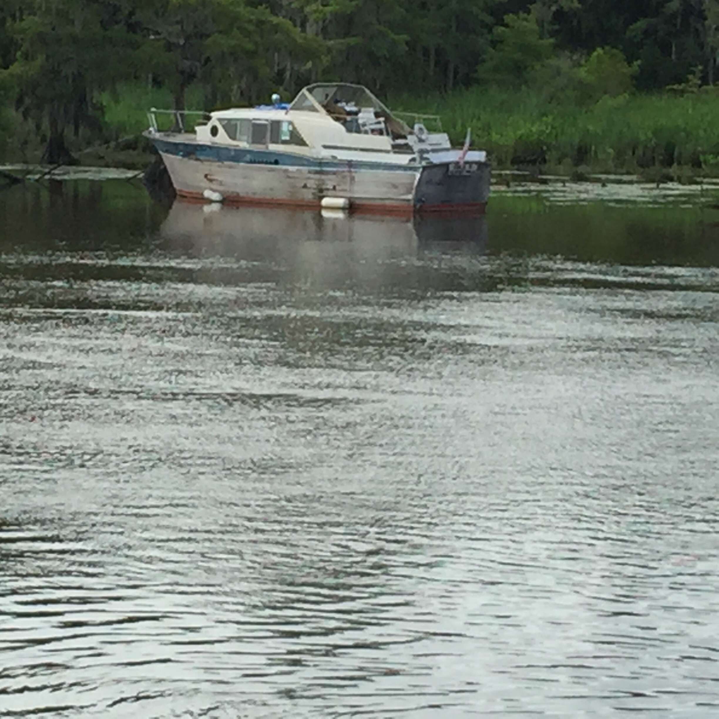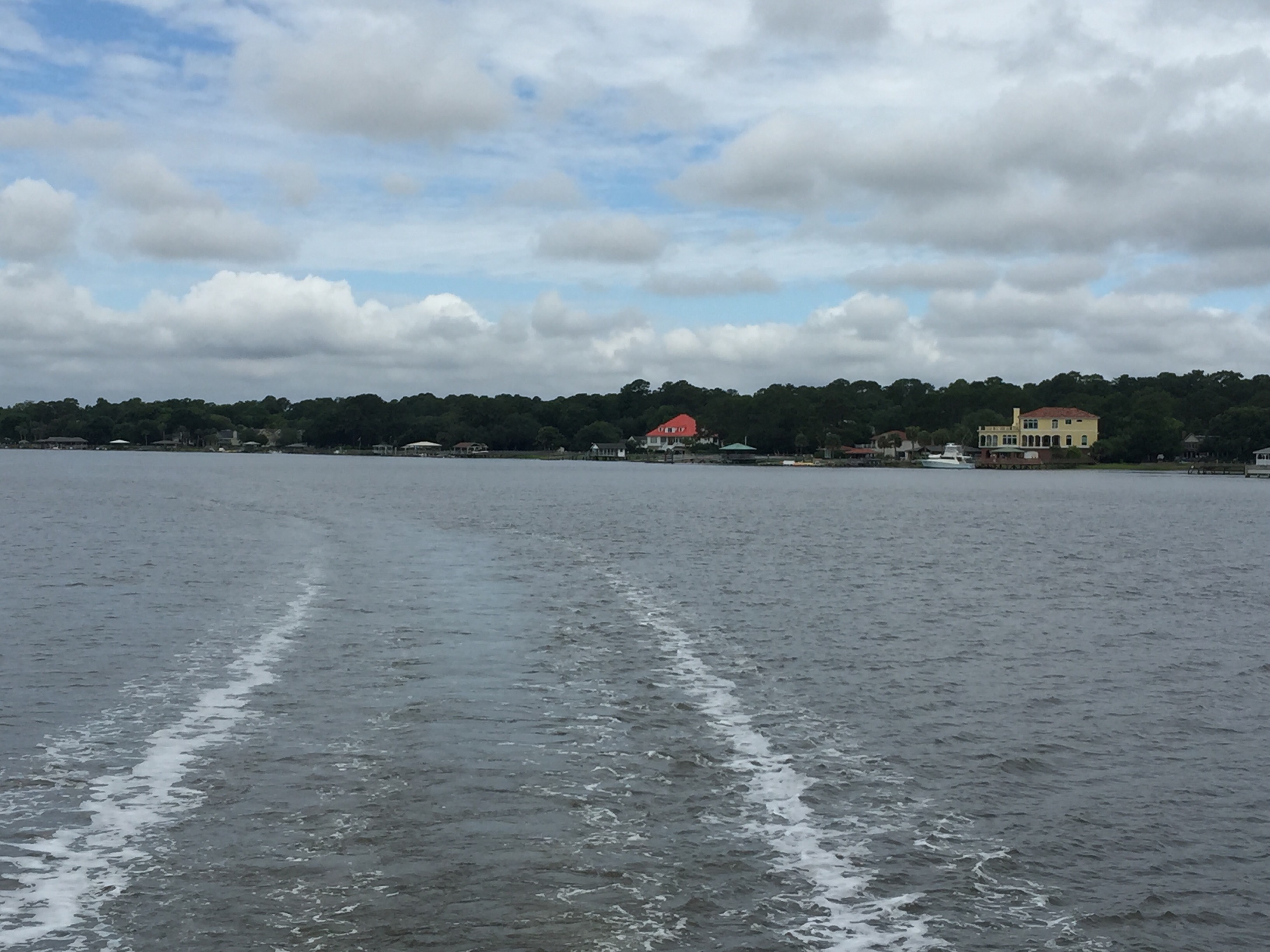 A wonderful town…pastel colored buildings with many different types of shopping and restaurants.  We only had time to experience the latter! We ate at a wonderful restaurant called Crab Trap in which we had a great fisherman’s platter with grilled local fish at wonderful deviled crab etc. We truly enjoyed it! We raced i port to beat a storm and we managed to tie up dry. However after dinner was a different story we had to race back to the boat in a huge downpour with lightning and thunder in the rest of the evening. In the morning we fueled up as it was a very easy location to do so and headed out by 930. We crossed into Georgia waters and have Glass like waters and a somewhat cloudy sky with predictions of possible late afternoon thunderstorms again. I will post some more pictures again of today and let you know where we stop tonight. It is fun not having a schedule we just know we have a goal!Edit Edit
