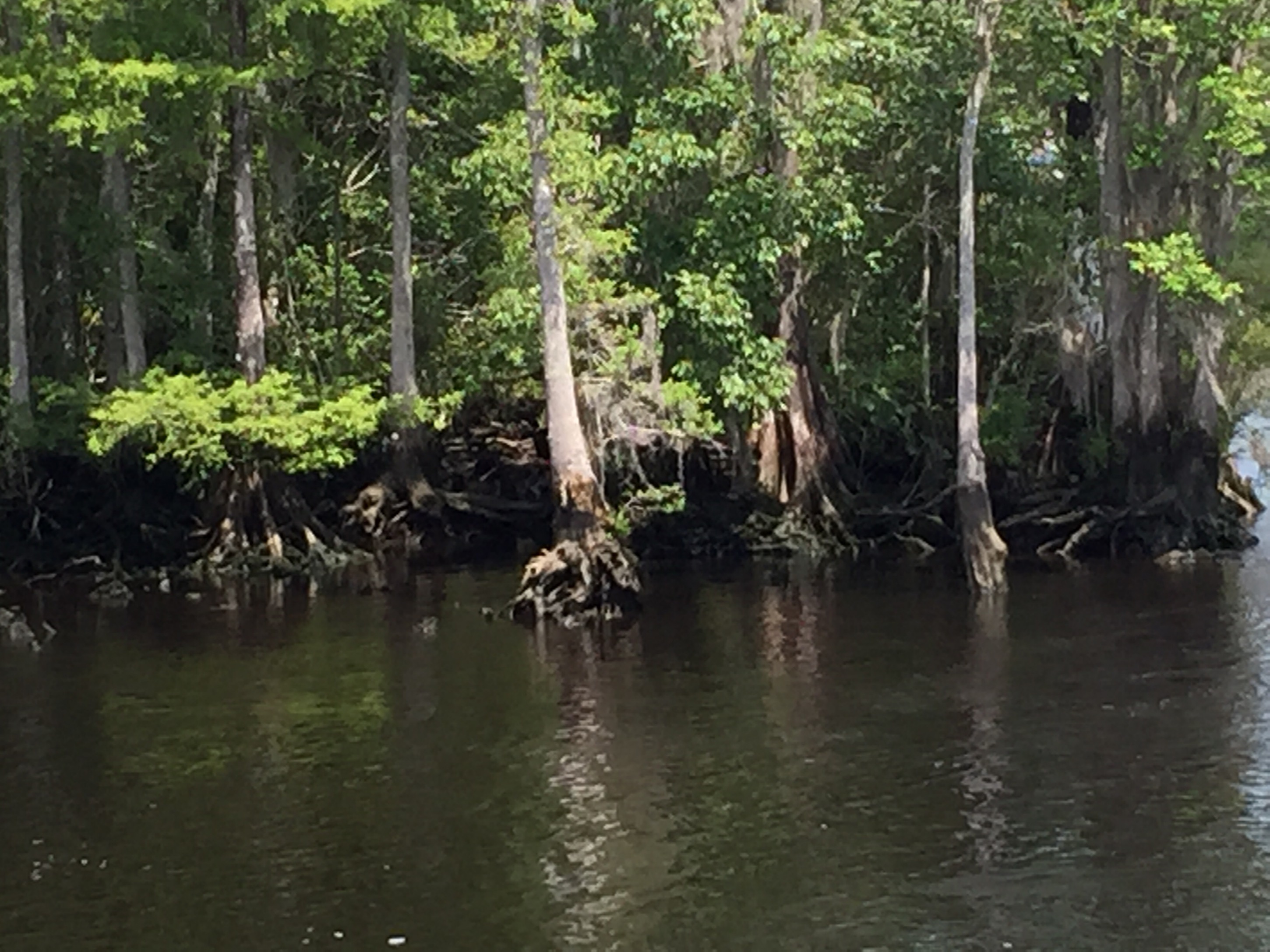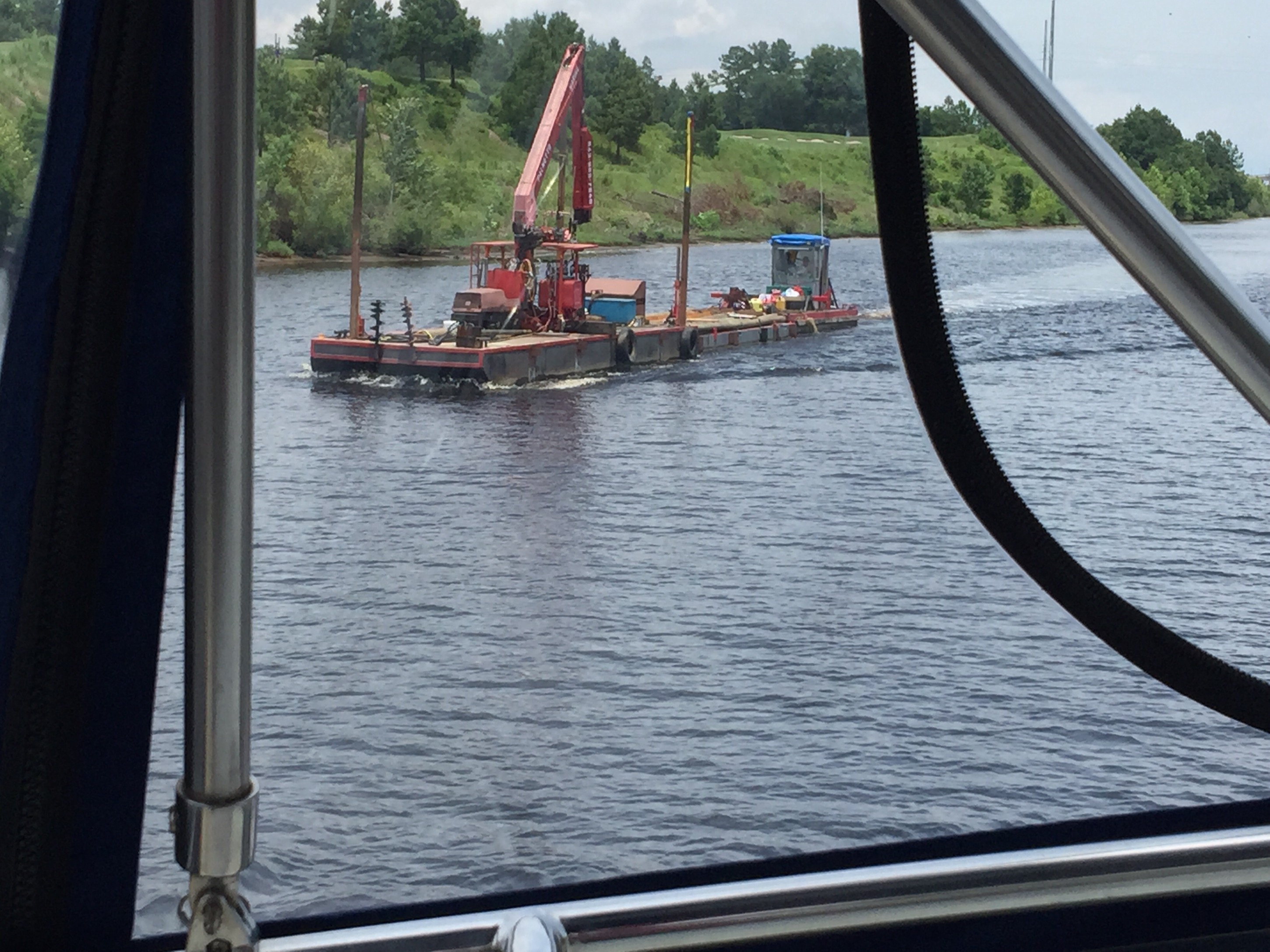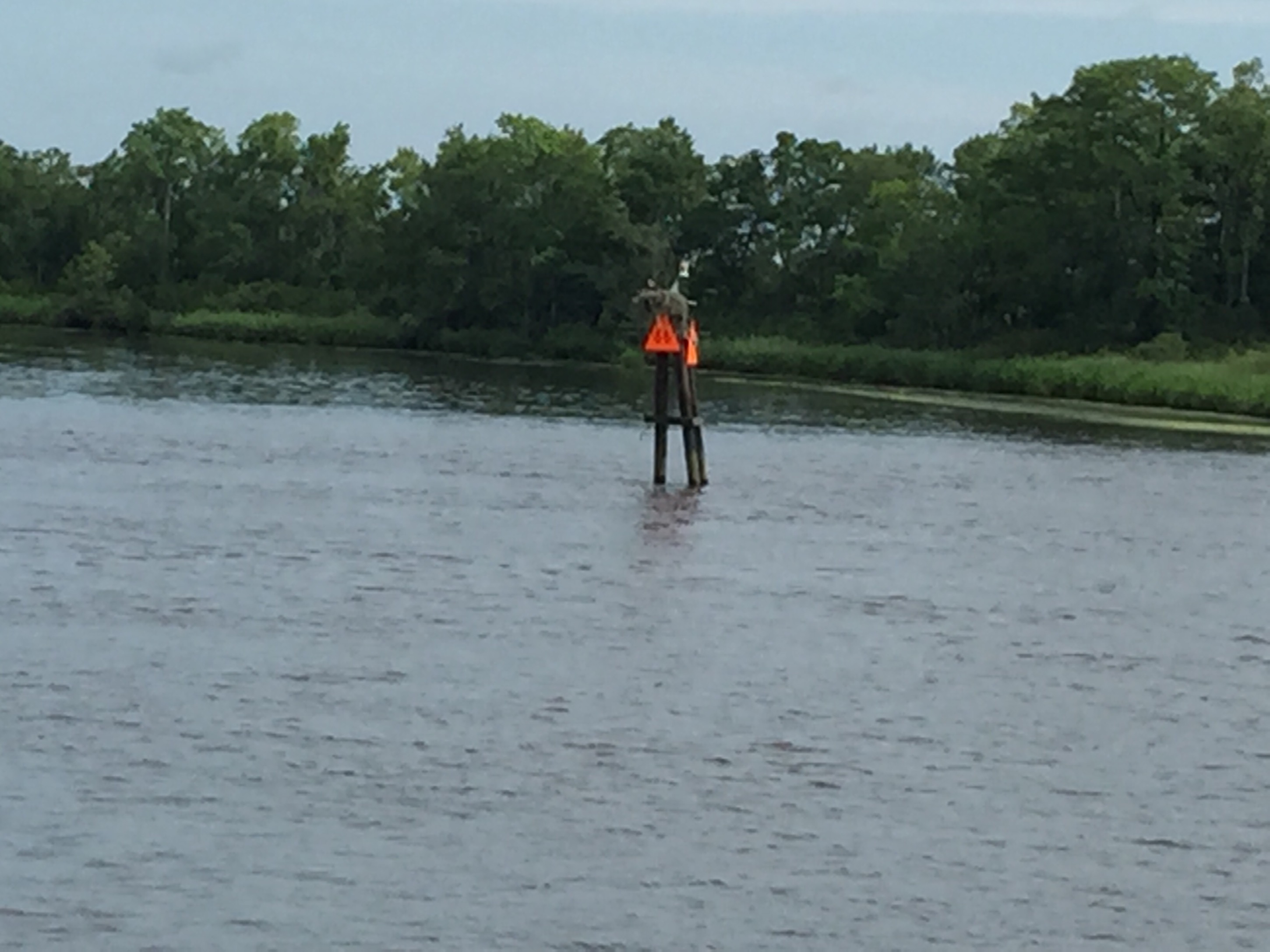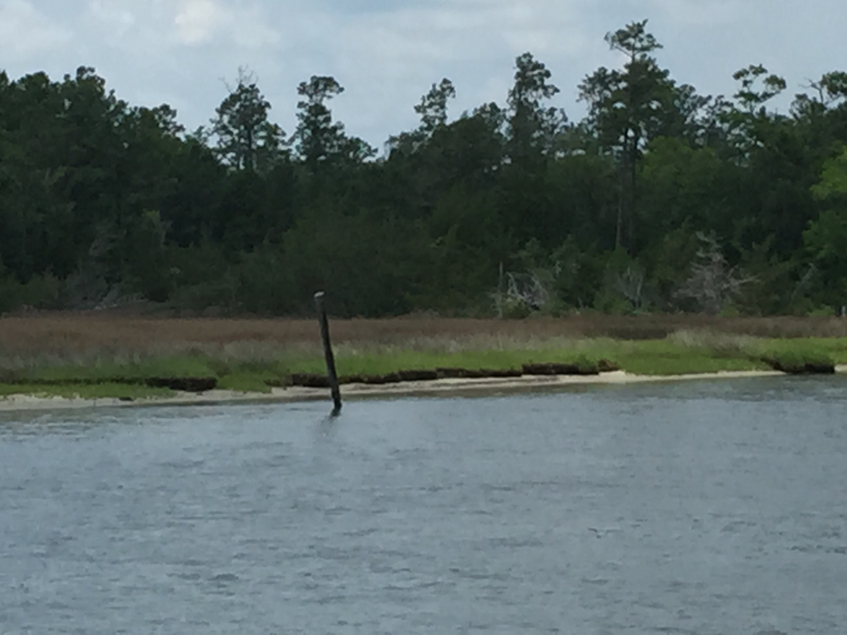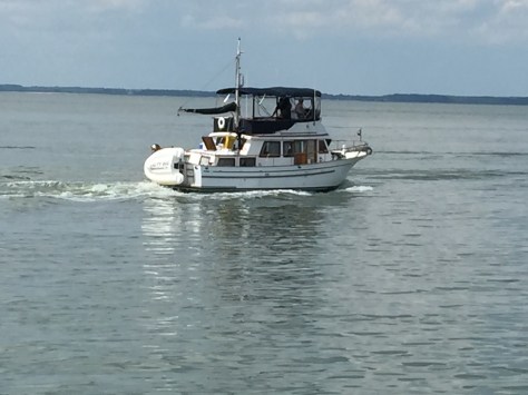 We made it to Oriental, NC…a lovely day after a frustrating mechanical delay in Morehead City.  After a long stretch on canal type cruising, we had the longest stretch in what seemed like Long Island Sound to us, but 12 ft debth max!  Pamlico Sound is a sailers haven most likely as it is large and deep enough.  We passed the most number of sail boaters today than previously.  The harbor is quaint , with a pool and great people running it.  The story is that a lot of folks came in their boats and decided to stay permanently! We dare say we did not “do town” but mainly because there wasn’t time to ready the boat and ourselves for the evening after arriving and settling by 6:00ish.  It was beastly hot and had to swim to chill a bit. The Marina had a wonderful band on the grounds so we thoroughly enjoyed their lifestyle for the evening!