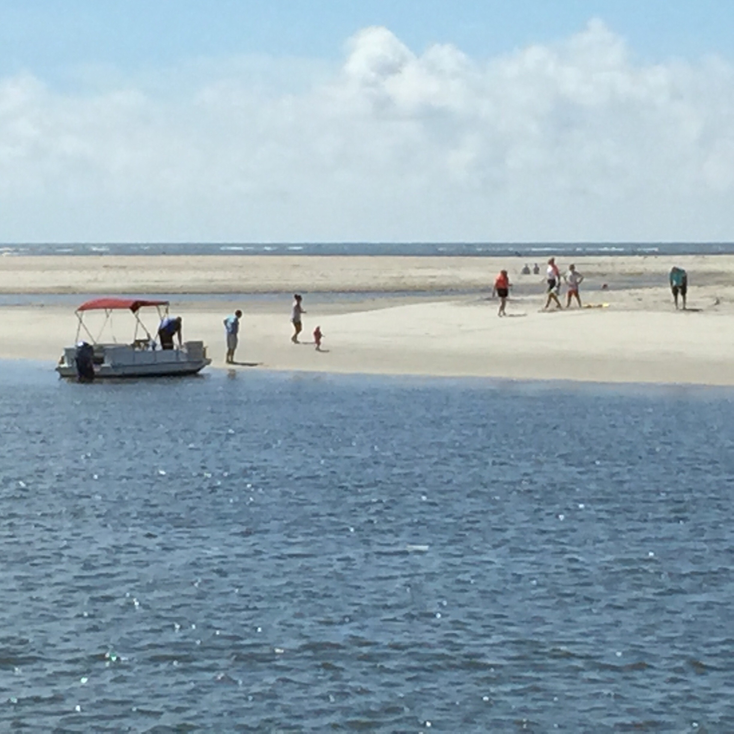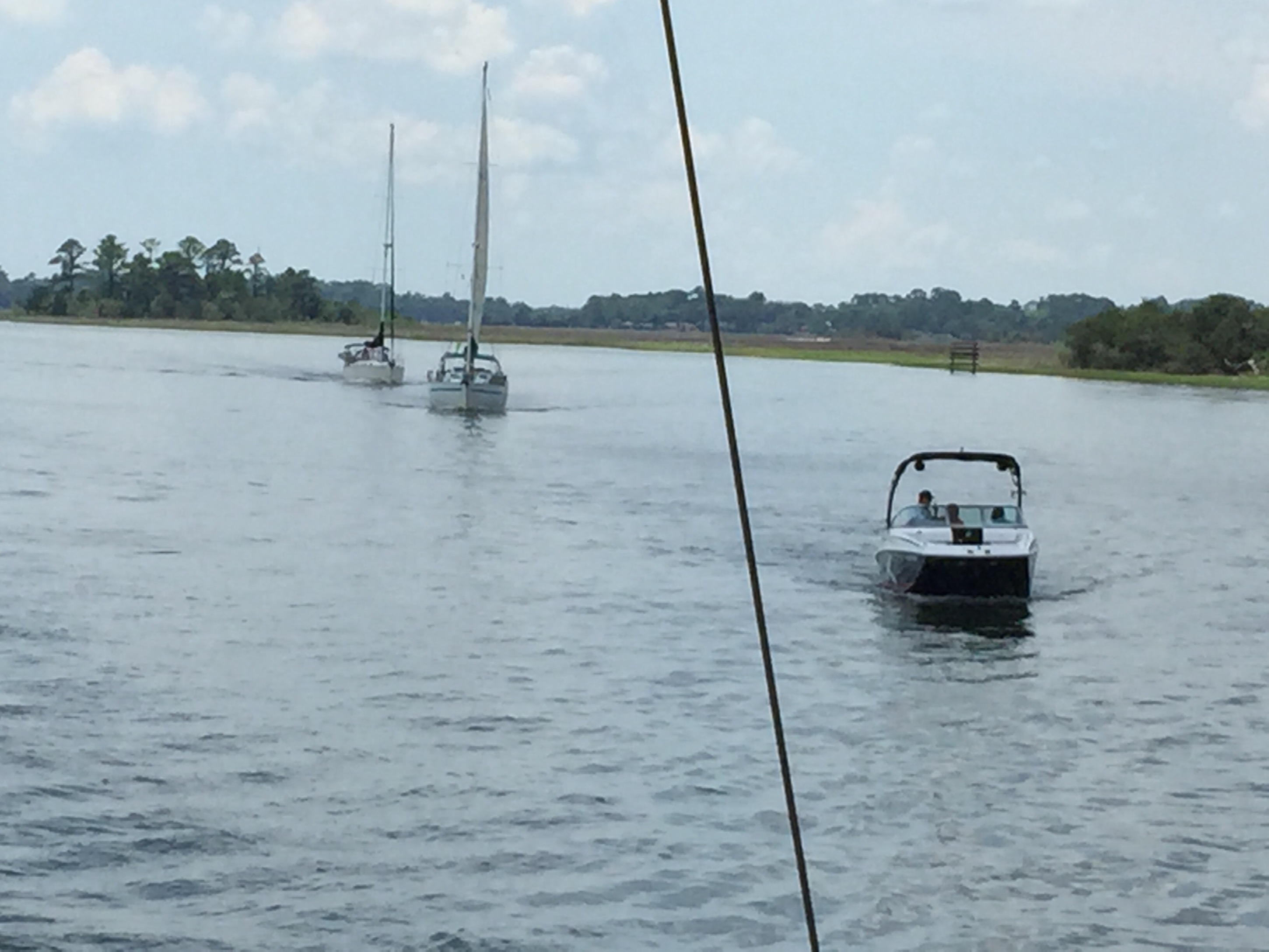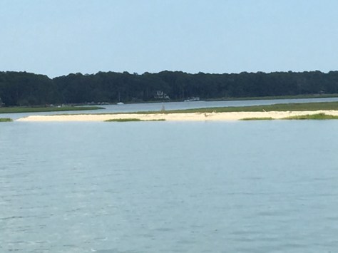 Georgetown. This is giving me a little time to catch up on the blog as after we left Beaufort South Carolina, I have not had a chance to post. When we left Beaufort for Charleston on Sunday we had a beautiful calm day and very calm seas.The ICW is usually very calm which is proving to be very nice. There were some fun looking picnics along the way by boaters -take note in the picture of the picnickers standing in the water waste high!  As we approached Charleston the wind picked up blowing 15 to 20 knots and the traffic seem to pick up also. Most boaters were going very fast, I guess trying to get to their ports.  Charleston Harbor was full of Sunday afternoon traffic. Fortunately there were no huge tankers or commercial traffic.